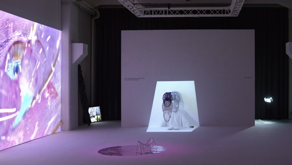 xəno əxo ɐstro is a constellation-reinstallation of four works by Simo Kellokumpu, created between 2019 and 2024. This open-format exhibition in MUU-gallery Helsinki invites visitors to engage with Kellokumpu’s choreoreading practice, which expands site- and place-responsive choreography by exploring these concepts and their relations on the scale of outer space. The project aims to reimagine place- and site-responsive practices, generating artworks that engage with the critical material of hyper-reading research, astrobiology, astronomical data and queer speculative fiction.